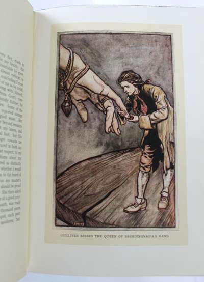 1909 J.M. Dent, 1st Thus. 292 pages. Hardcover, red cloth covers with ornate gilt decoration to front and spine. A revision of Rackham’s 1899 Edition. New color plates. Spine sun-faded, otherwise very good condition. Previous owner’s signature on end paper. $150.00